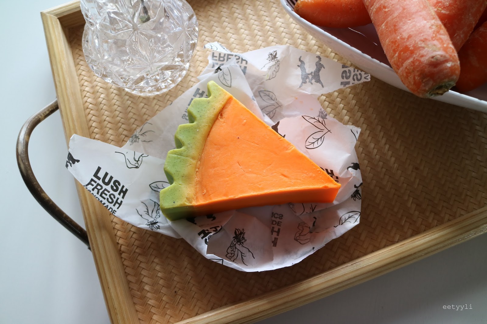 Lush lanseerasi Pääsiäiseen kasan limited edition tuotteita, joita oli pakko päästä tietyisti paikan päälle katsomaan ja ihastelemaan! Suurin osa tuotteista oli kylpyvaahtoja ja pommeja, joten oma valintani ammeettomana oli helppo; Carrot-saippua! Olisin kyllä ehdottomasti halunnut päästä kylpemään niin April Showers kylpypallon, kuin söpön fisun, Poisson D`avrilin kanssa. Näissä kahdessa oli ihanimmat tuoksut!